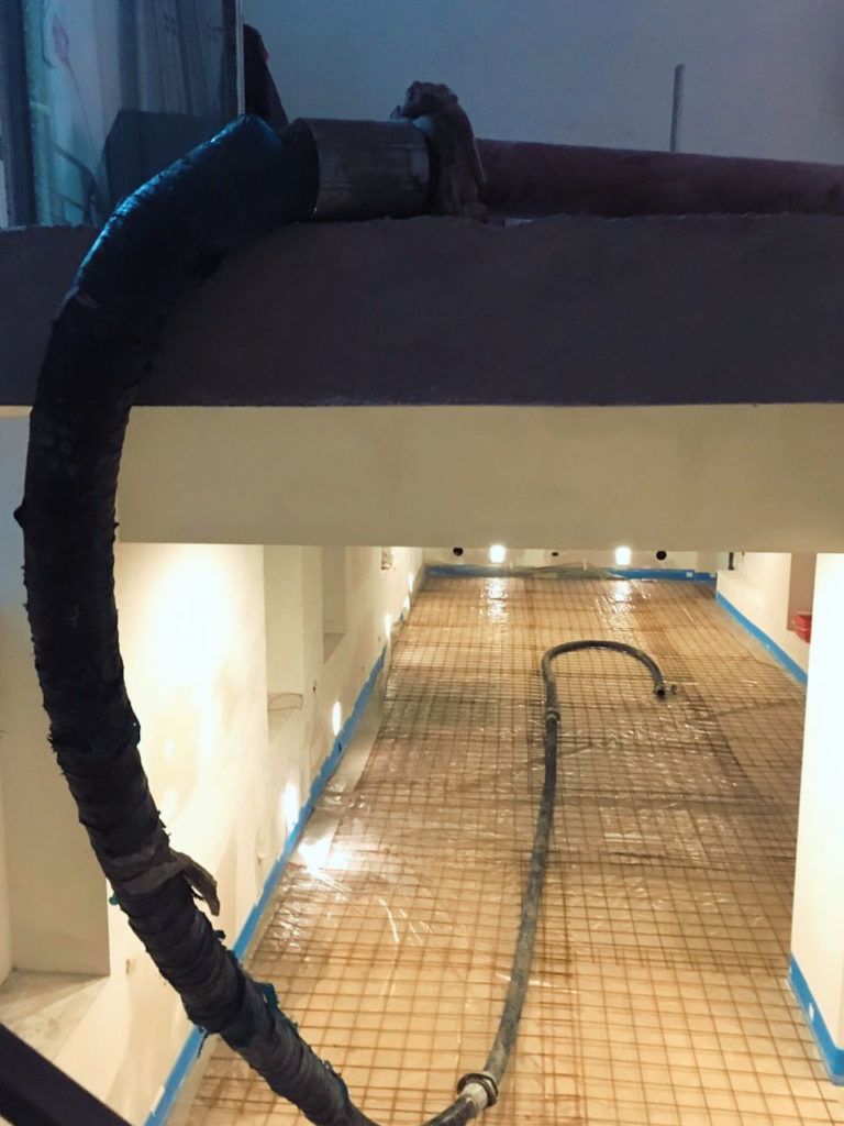 Massetto a base di sabbia, granulometria 0-5 mm ca. con dosaggio di cemento 200/250 kg/mc, eseguito mediante impianto automatizzato che miscela in modo autonomo, preciso e costante, ottenendo così un impasto omogeneo con ottima lavorabilità.
